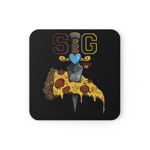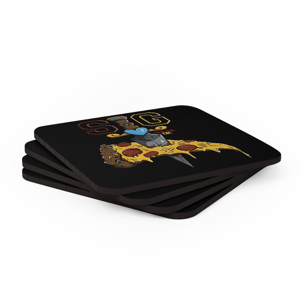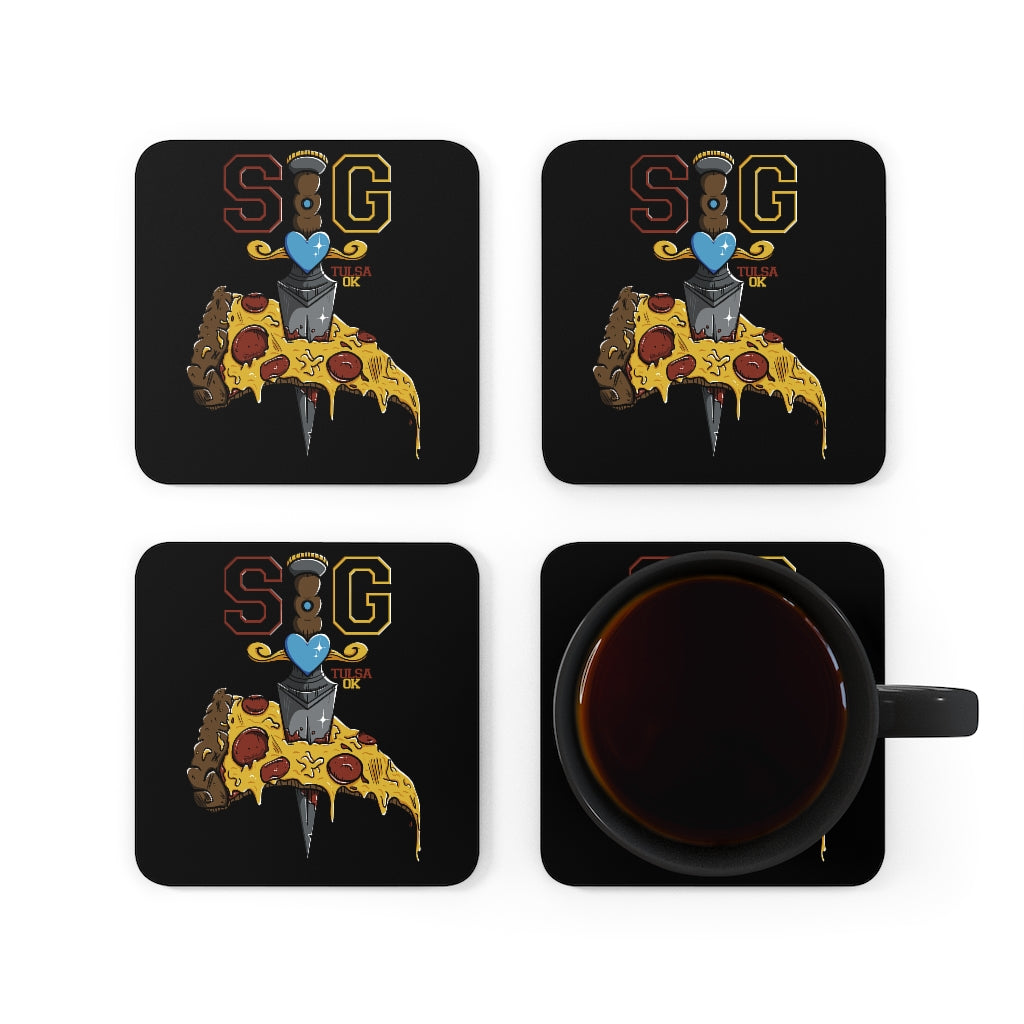 .: High-gloss MDF top.: Cork back to prevent sliding.: 0.16" (0.4cm) thick .: 4-piece set.: One size: 3.75" × 3.75" (9.50cm x 9.50cm)
