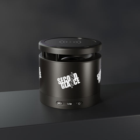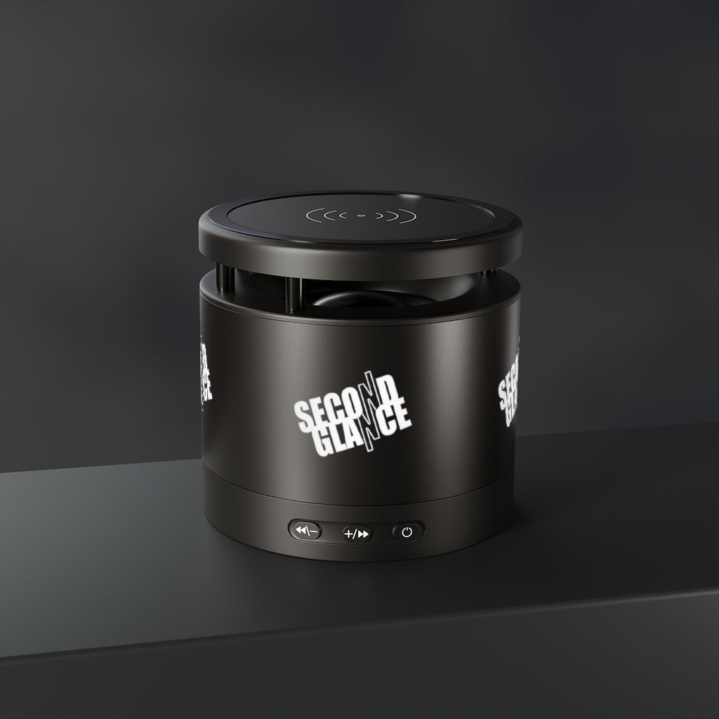 Equipped with Bluetooth version 4.2, a 33ft connection range, and a 3W output, this Aluminum-bodied, personalized Bluetooth speaker delivers crystal clear sound anywhere you go. Connect any Android/ iOS phone (including iPhone X) and listen at max volumes for over 2 hours. The top part of the speaker is a smart wireless charging pad. Package includes: 2 in 1 USB charging cable & 3.5mm Aux cable.